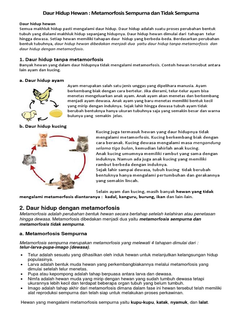 Daur Hidup Hewan Metamorfosis Sempurna Dan Tidak Sempurna