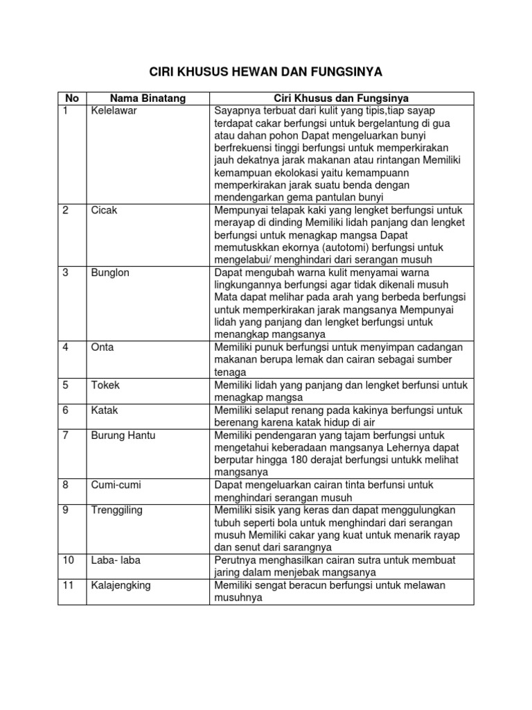 Ciri Khusus Hewan Dan Fungsinya Terlengkap Page 2 Of 4