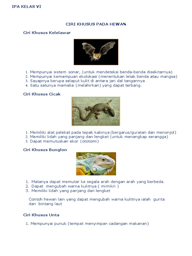 Ciri Khusus Beberapa Hewan Dan Tumbuhan Sd Kelas 6 By Syifadhila