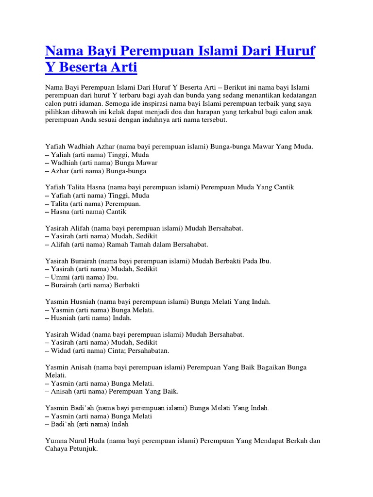 Nama Bayi Perempuan Beserta Artinya Yang Islami Dan Modern