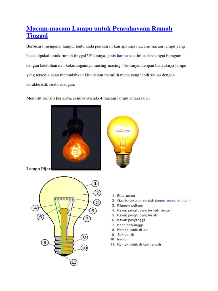 Macam Macam Jenis Lampu Artikel Online Jagad Id
