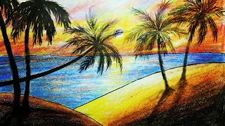 Cara Melukis Pantai Saat Matahari Terbenam Dengan
