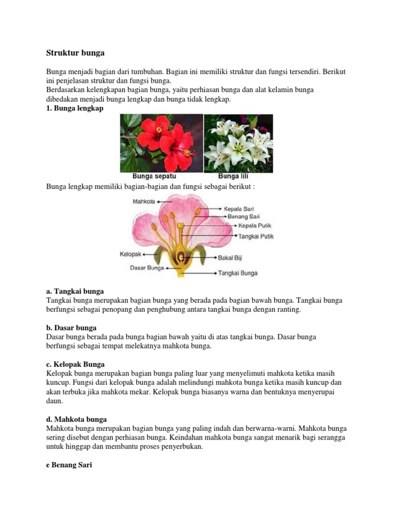Struktur Bunga Fungsi Serta Ulasan Lengkapnya Infoku