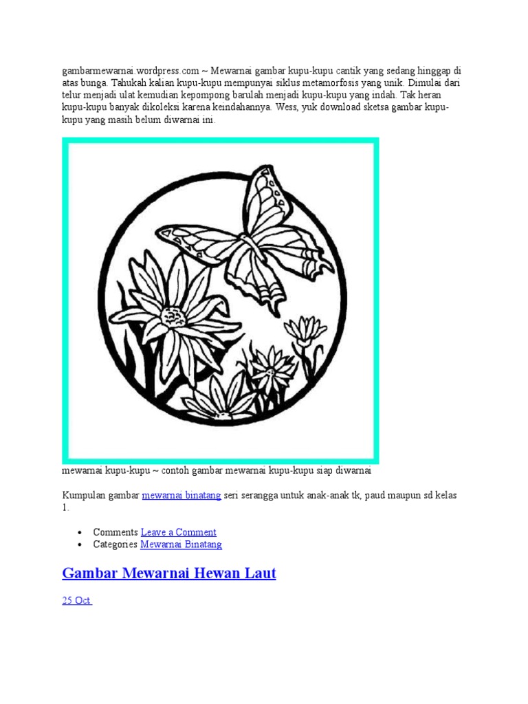 14 Gambar Mewarnai Binatang Laut Anak Tk Paud Dan Sd Atau